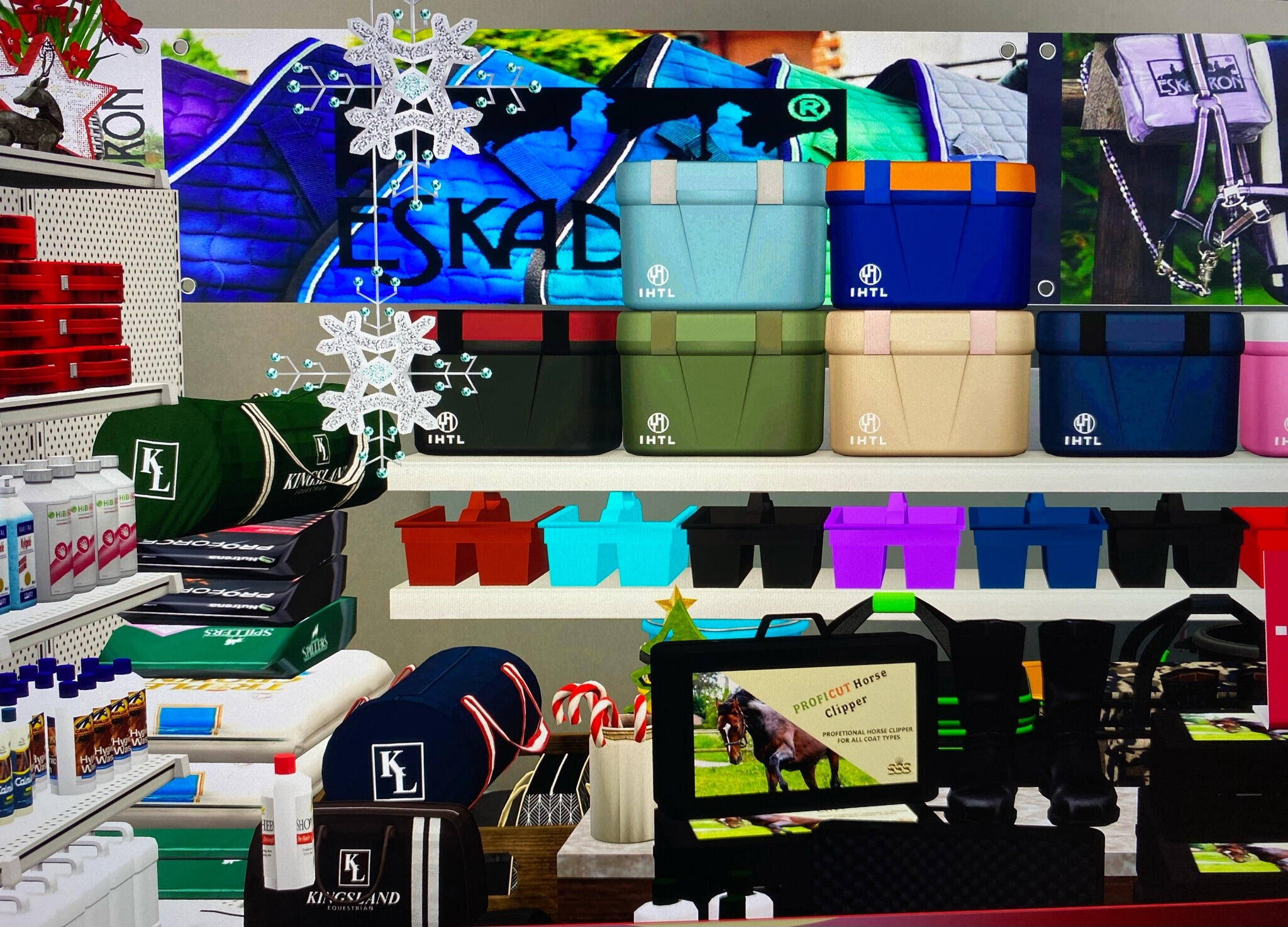 Ready to take this show (pony) on the road? We proudly carry Kingsland duffels and I.H.T.L.’s full ShowKit line, from garment bags for you to tack covers and carts for your horse, to keep you both looking sharp whenever your travels take you. Are you leasing one of our horses for an away show? Worry not: we’ve partnered with our suppliers to bring their feed right to you at a stellar discount! Packing just became a whole lot easier.